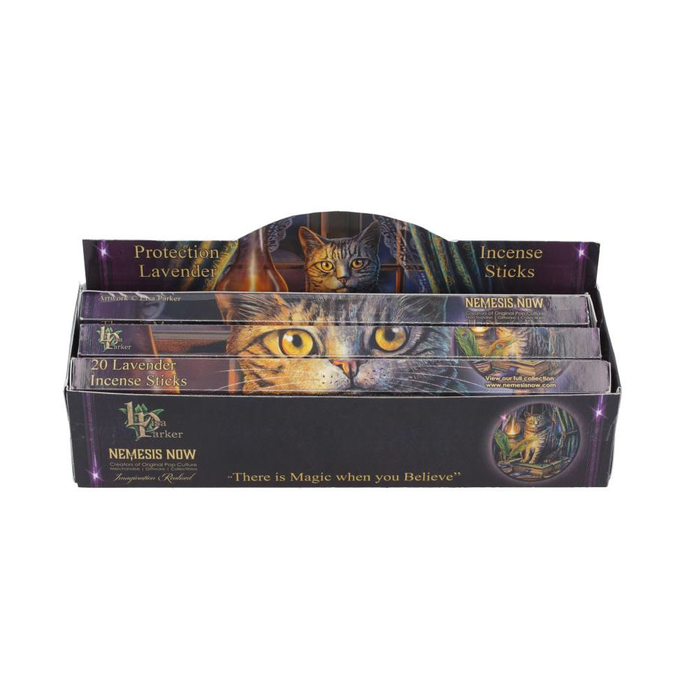 From the magical artwork of Lisa Parker, comes these beautifully designed incense sticks. These sticks are scented with Lavender, a fragrance that is known for its floral fragrance with a hint of herbs and evergreen woodsy. Which has the ability to calm and soothe an individual. On the box, there is an image of Lisa's Book of Shadows artwork, along with the quote " There is magic when you believe". Containing twenty incense sticks, this is the perfect product for any spiritual collection. Keywords: protection, incense, sticks, Cats, Incense & Perfumes, Lisa Parker.